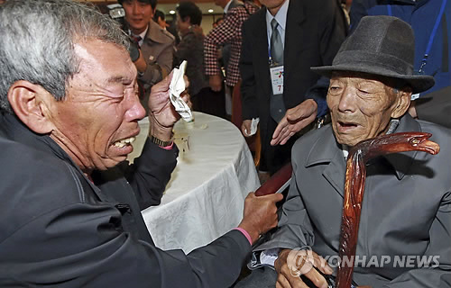 It's pictures like this that remind me of how real the separation between the Koreas are.... However, I fear that after this generation passes on, South Korea especially, will forget what the division has done to so many Koreans.